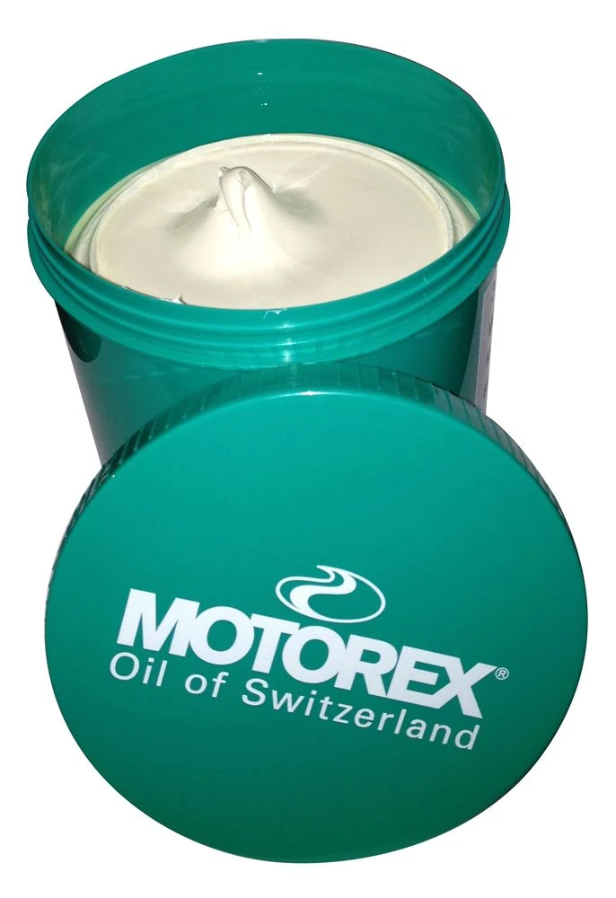 Ervaring in onze werkplaats leert dat met de witte Motorex kettingvet preciezer gesmeerd kan worden en het resultaat uitstekend is. Smeren wordt gedaan met een (niet bijgeleverde) kwast. De geleverde pot is 850 gram en kan vele smeerbeurten mee.